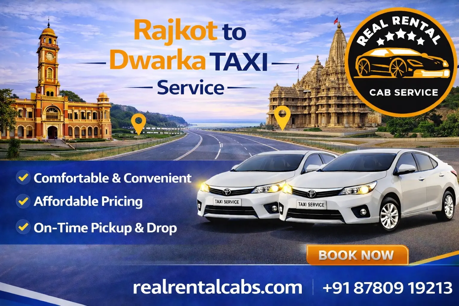 Of all the cities in Gujarat, Rajkot has the most proximity to Dwarka which is a four-hour drive, compared to 8 hours from Ahmedabad.The proximity makes a planned Rajkot to Dwarka taxi trip outstation an extremely satisfying choices for pilgrimage in the state.RealRentalCabs will manage the route planning time, comfort, and timing to ensure that your focus is at the Darshan.